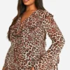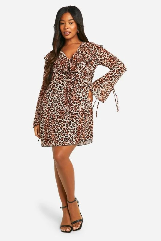 BOOHOO Plus Woven Leopard Ruffle Shift Dress