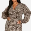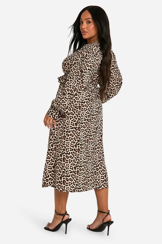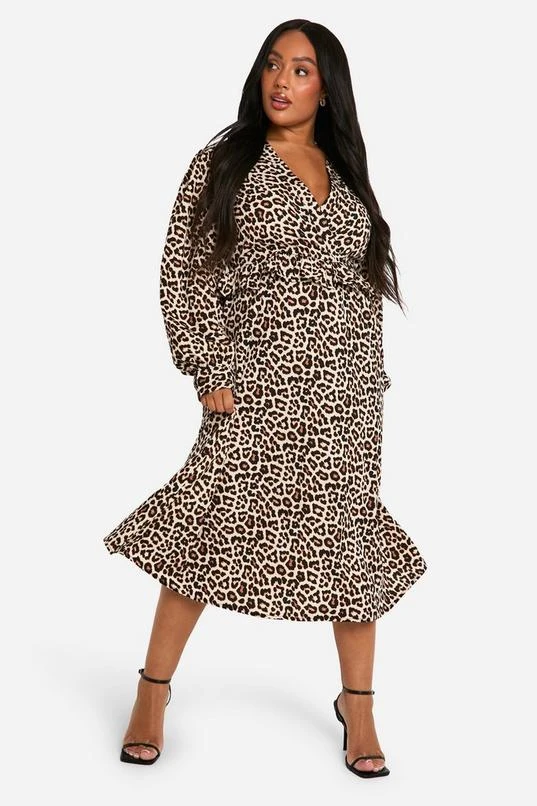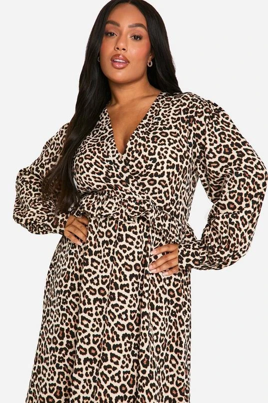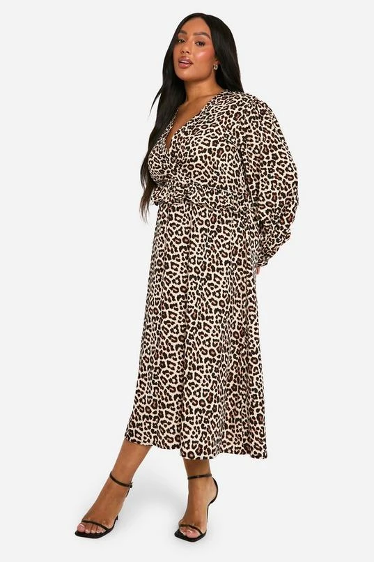 BOOHOO Plus Woven Leopard Wrap Midi Dress