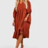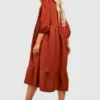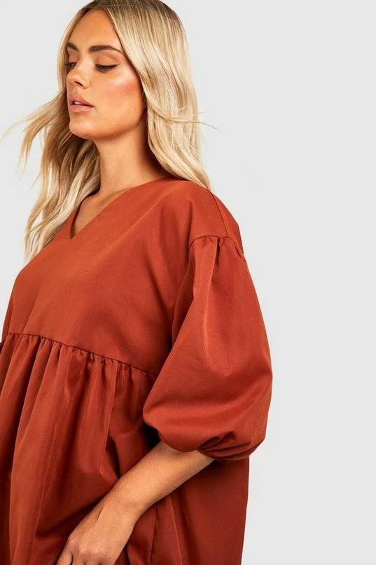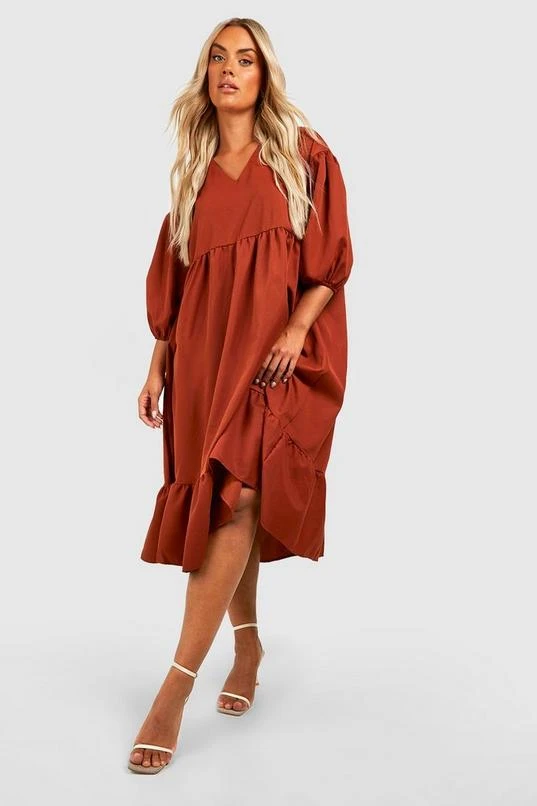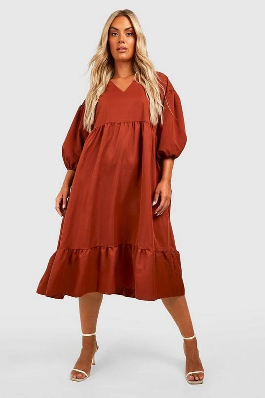 BOOHOO Plus Woven Puff Sleeve Tiered Smock Dress