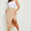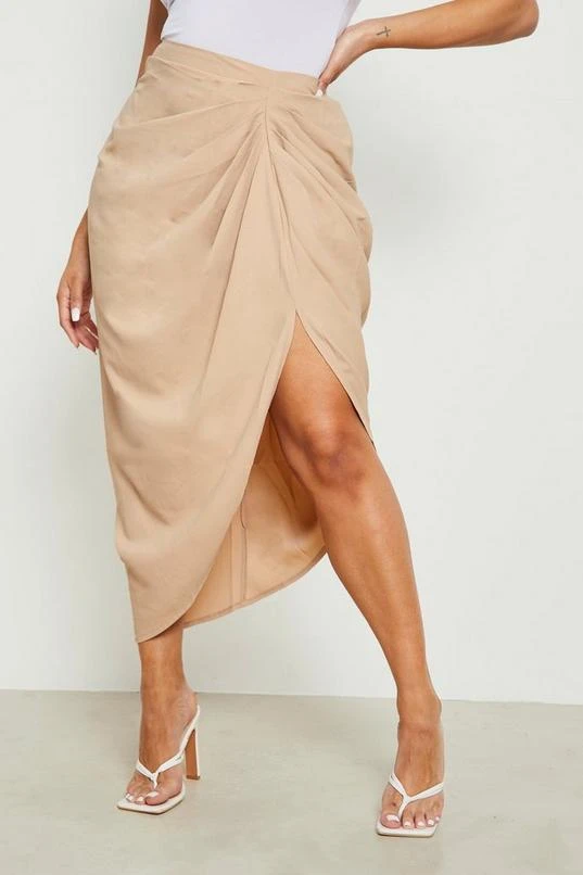 BOOHOO Plus Woven Ruched Front And Back Midi Skirt