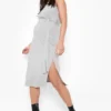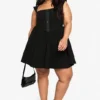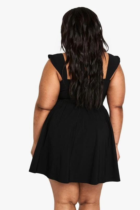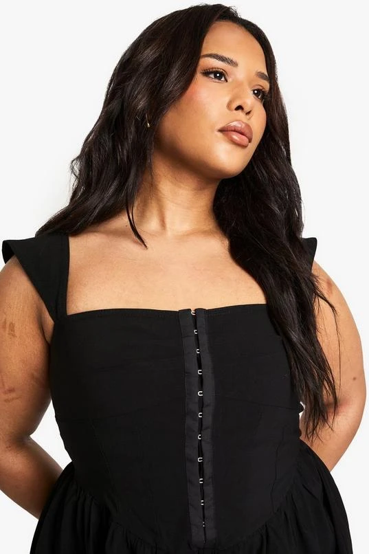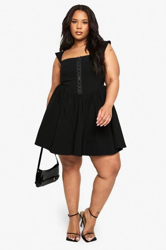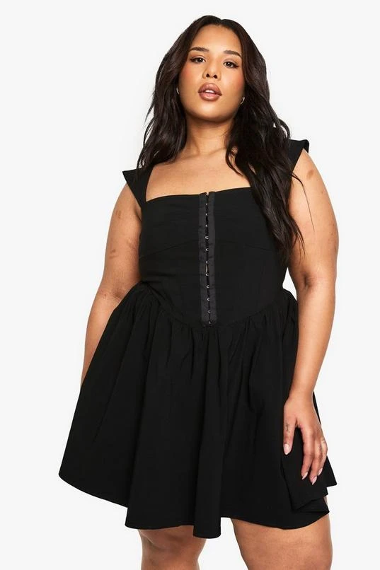 BOOHOO Plus Woven Stretch Corset Detail Short Sleeve Floaty Mini Dress