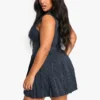 BOOHOO Plus Woven Stripe Plunge Pleated Dress