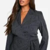 BOOHOO Plus Woven Stripe Tailored Wrap Dress