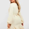 BOOHOO Plus Woven Tie Belt Tiered Smock Dress