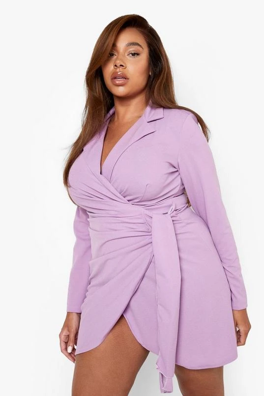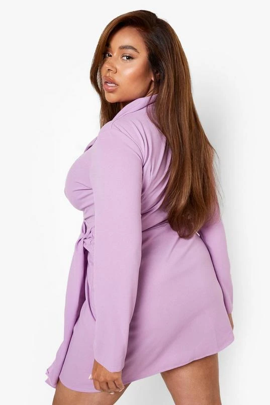 BOOHOO Plus Wrap Sash Detail Blazer Dress