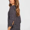 85% Polyester and 15% Cotton. Machine Washable. Model wears a US size 6.