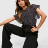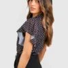 BOOHOO Polka Dot Frill Sleeve Woven Blouse