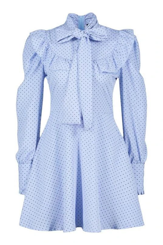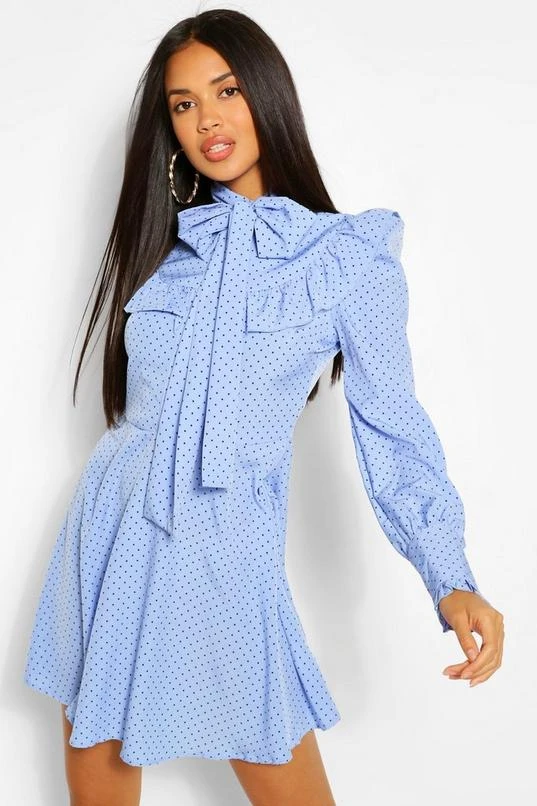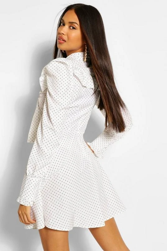 BOOHOO Polka Dot Ruffle Detail Long Sleeve Skater Dress