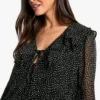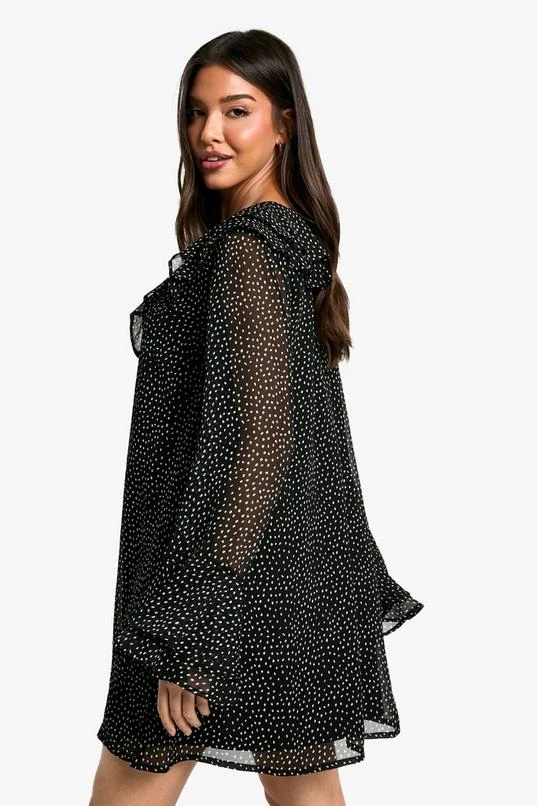 BOOHOO Polka Dot Ruffle Shift Mini Dress