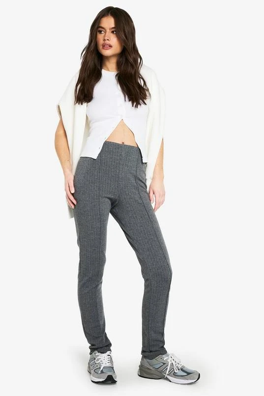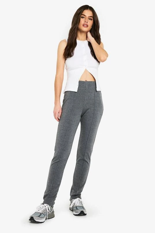 BOOHOO PONTE PINSTRIPE TAILORED PINTUCK SLIM TROUSERS