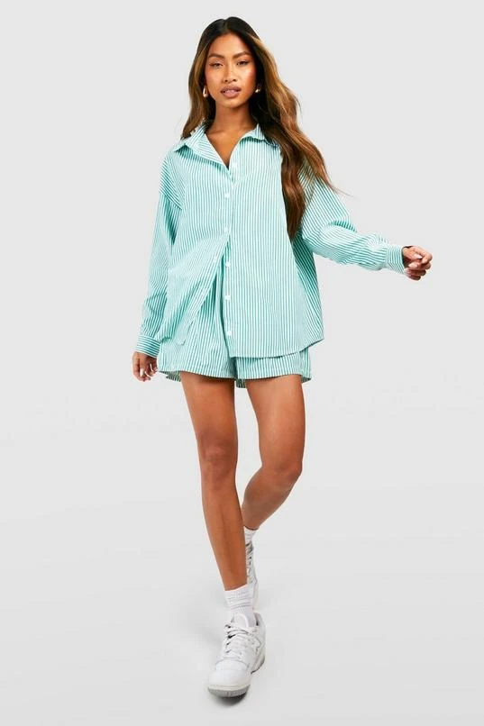 BOOHOO Poplin Striped Oversized Shirt & Shorts