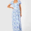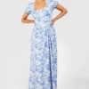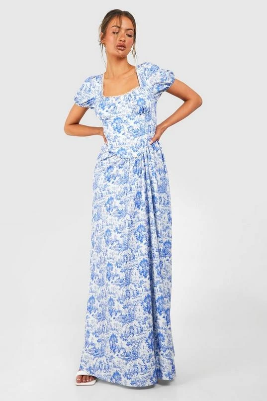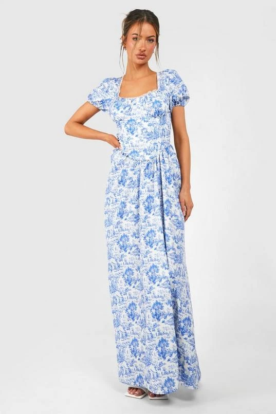 BOOHOO Porcelain Puff Sleeve Maxi Milkmaid Dress