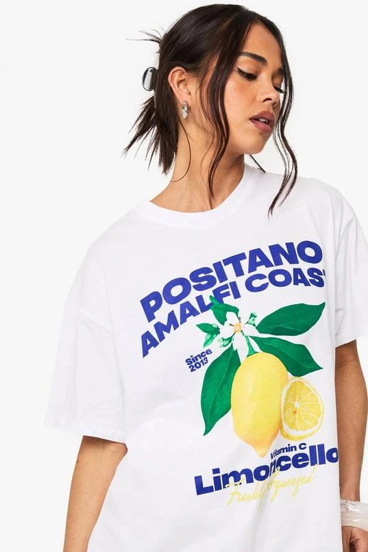 BOOHOO Positano Amalfi Cost Lemon Print Oversized T-Shirt