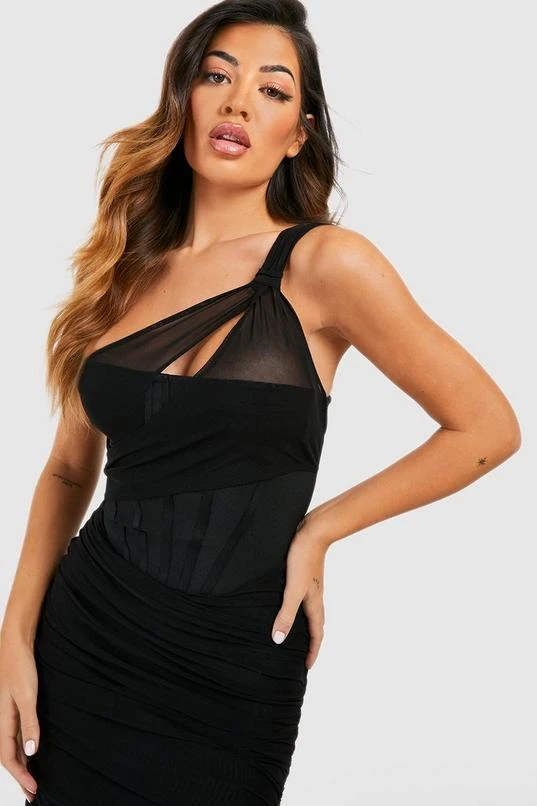 BOOHOO Premium Bandage Mesh Overlay Midi Dress