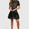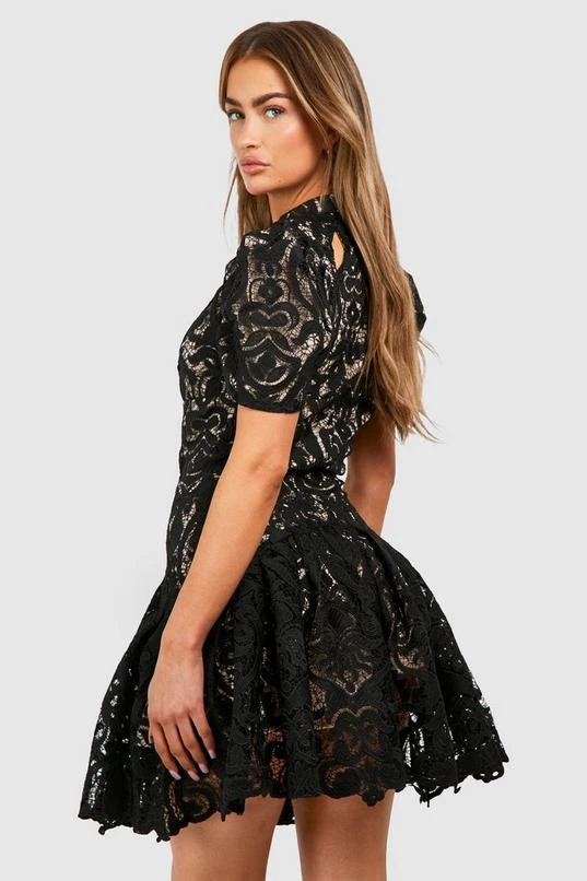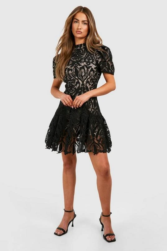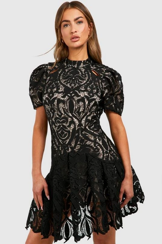 BOOHOO Premium Crochet Lace Puff Sleeve Mini Dress