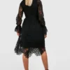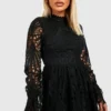 BOOHOO Premium Lace High Neck Midi Skater Dress