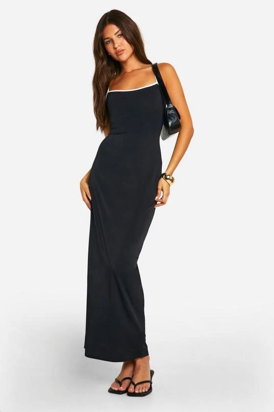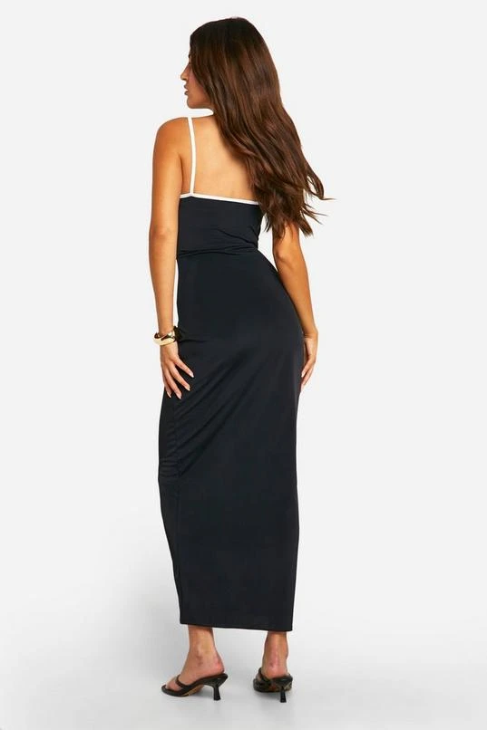 BOOHOO Premium Matt Slinky Contrast Maxi Dress