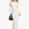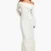 BOOHOO Premium Oversized Rib Bardot Neckline Soft Knit Jumper Dress