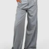 BOOHOO Premium Pinstripe Wide Leg Turn Cuff Dress Pants