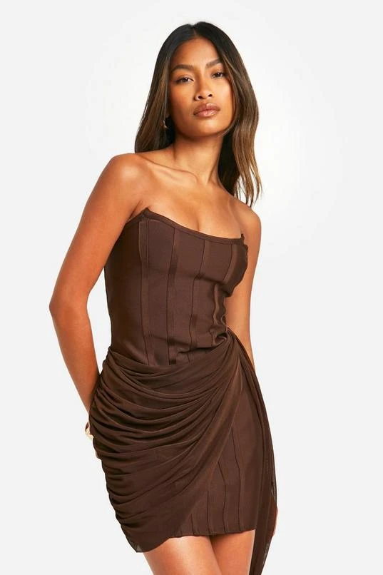 BOOHOO Premium Power Mesh Bandage Corset Dress