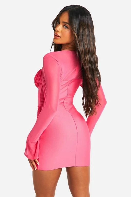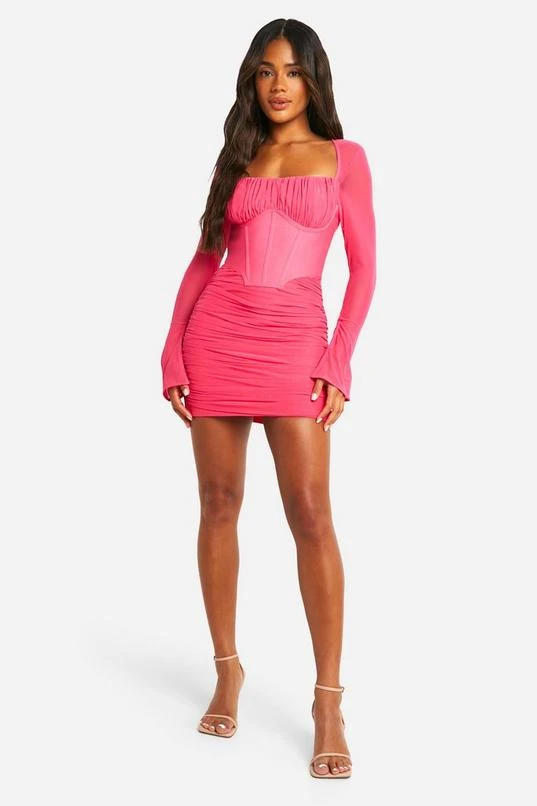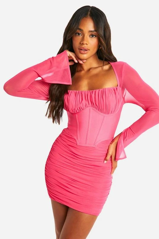 BOOHOO Premium Power Mesh Flare Sleeve Dress