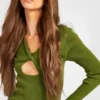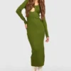BOOHOO Premium Rib Knit Twist Front Midi Dress