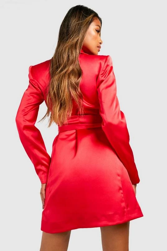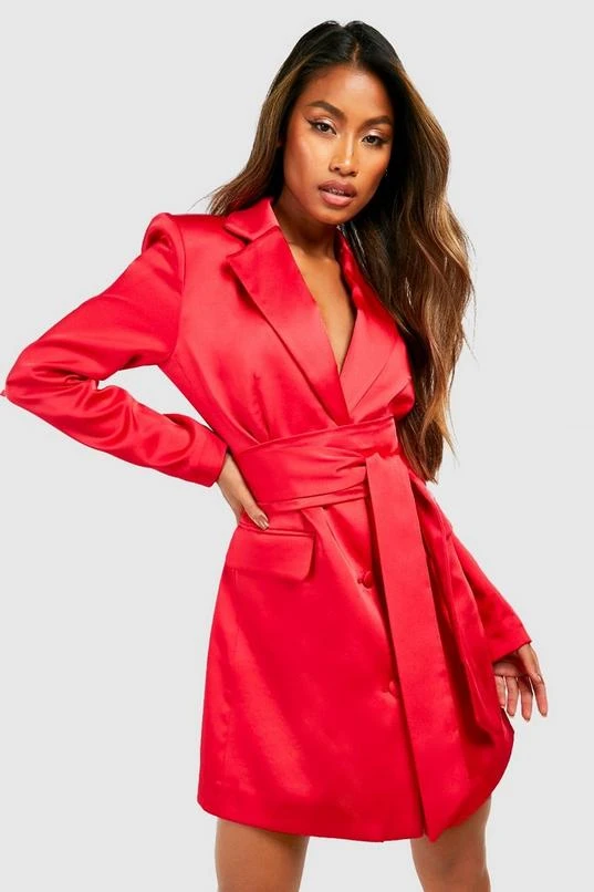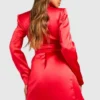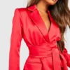 BOOHOO Premium Satin Obi Tie Waist Blazer Dress