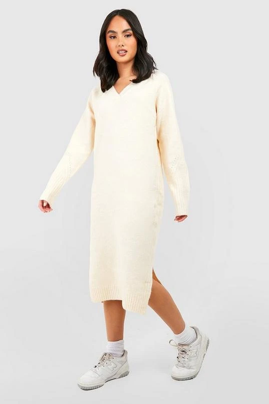 BOOHOO Premium Soft Knit V Neck Slouchy Midi Knitted Dress