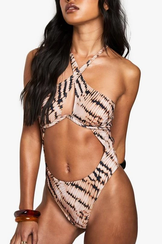 BOOHOO Premium Swim Tie Dye Underwired Cutout Swimsuit