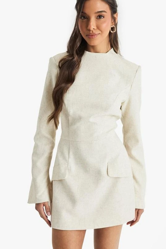 BOOHOO Premium Tailored Linen Look Flare Sleeve Tailored Mini Dress