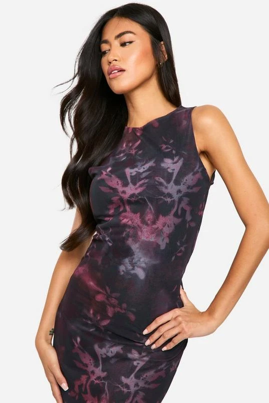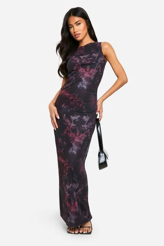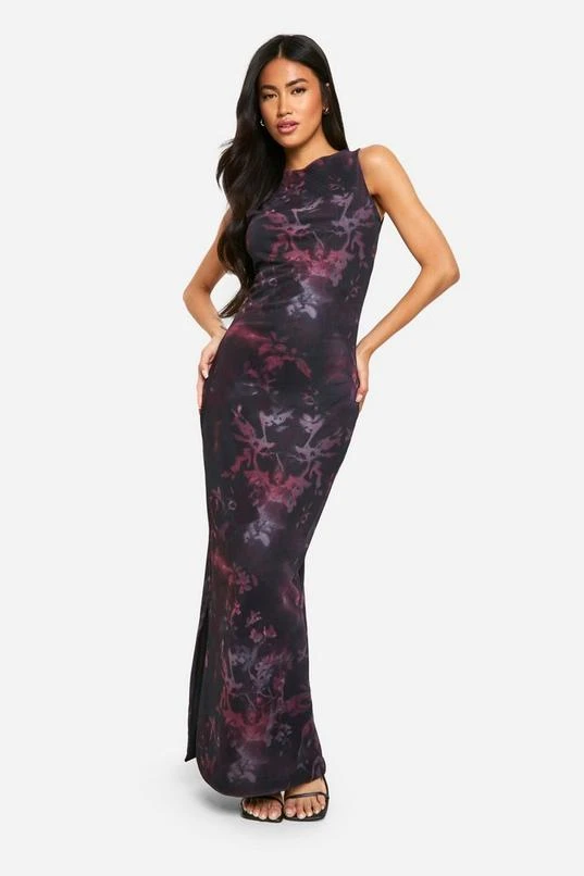 BOOHOO Printed Mesh Racer Neck Maxi Dress