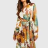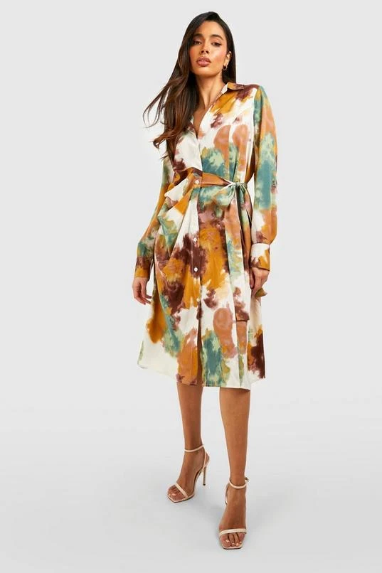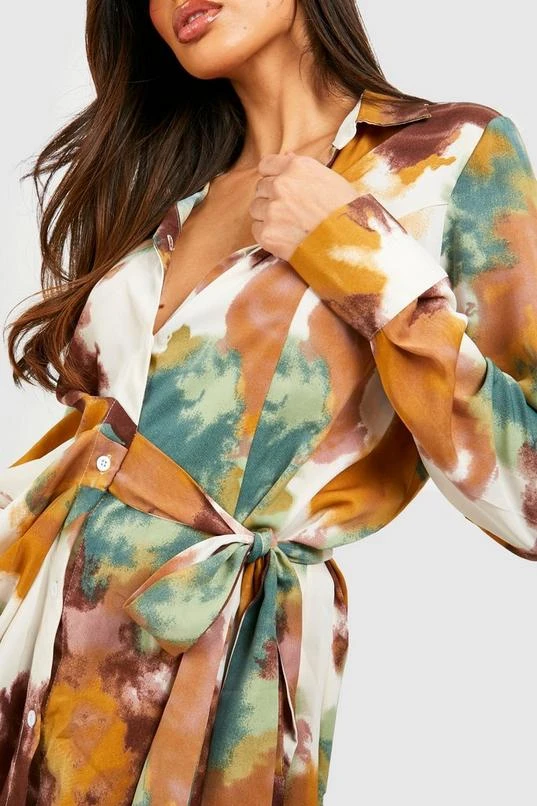 BOOHOO Printed Tie Detail Shirt Dress