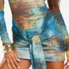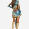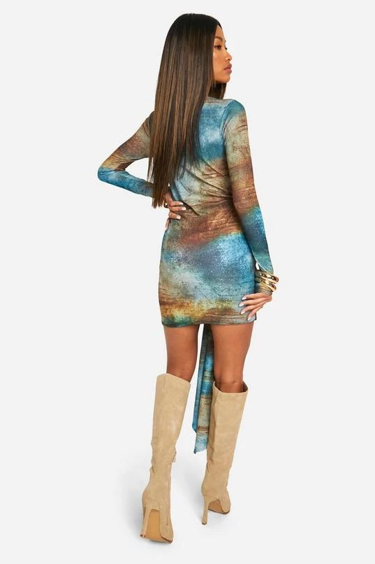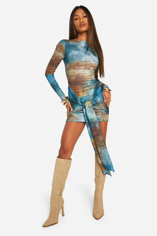 BOOHOO Printed Tie Front Mesh Mini Dress