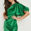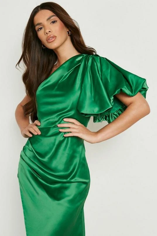 BOOHOO Puff One Shoulder Side Split Maxi Dress