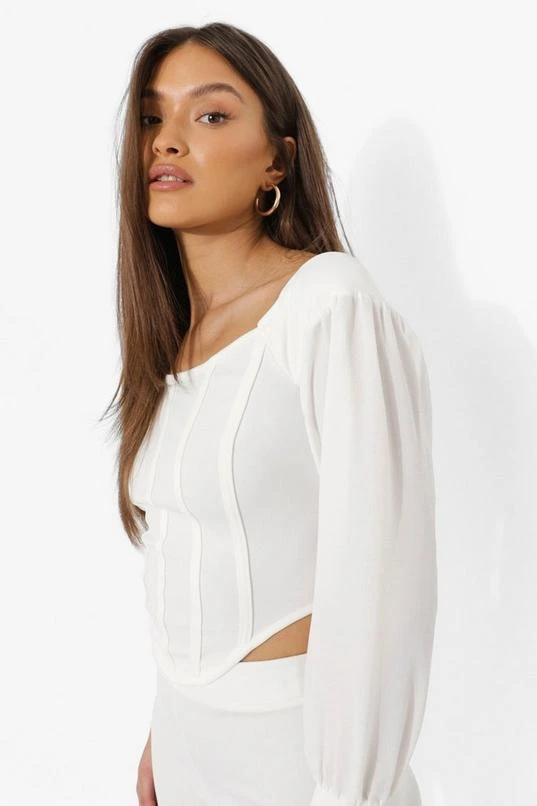 BOOHOO Puff Sleeve Corset & Wide Leg Pants