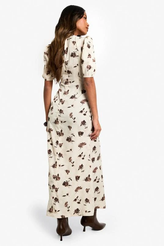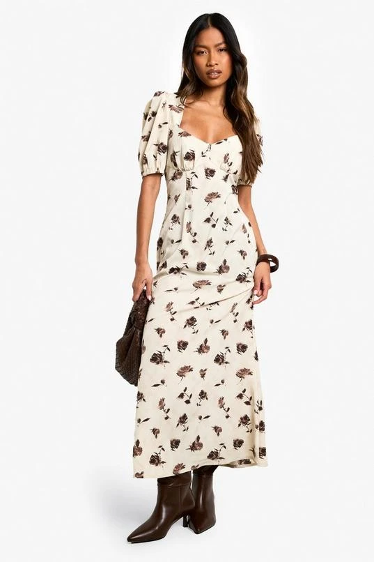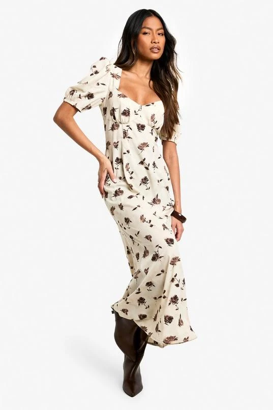 BOOHOO Puff Sleeve Frill Hem Midaxi Dress