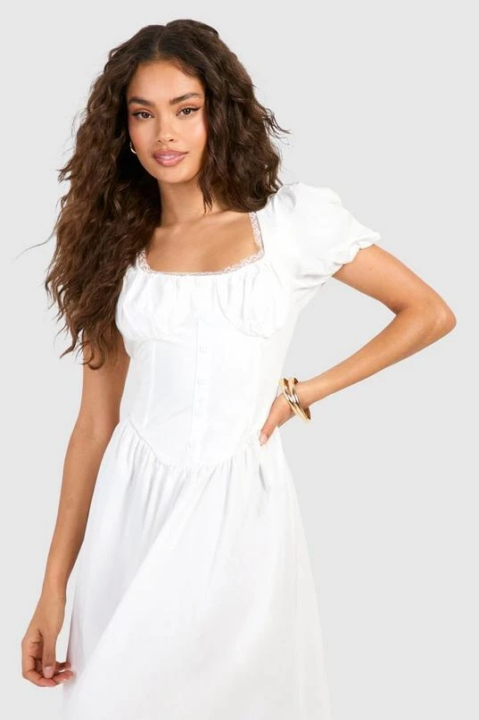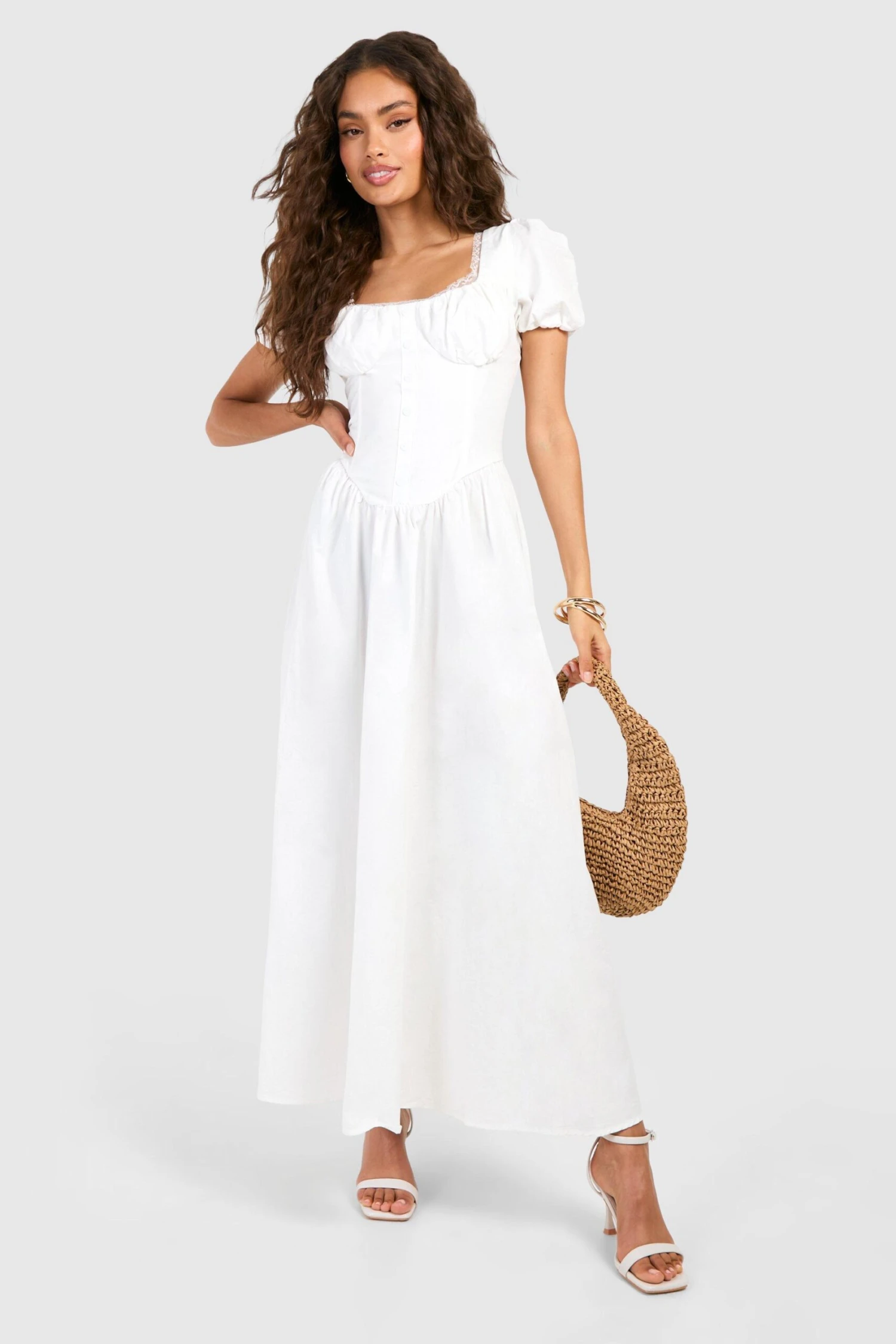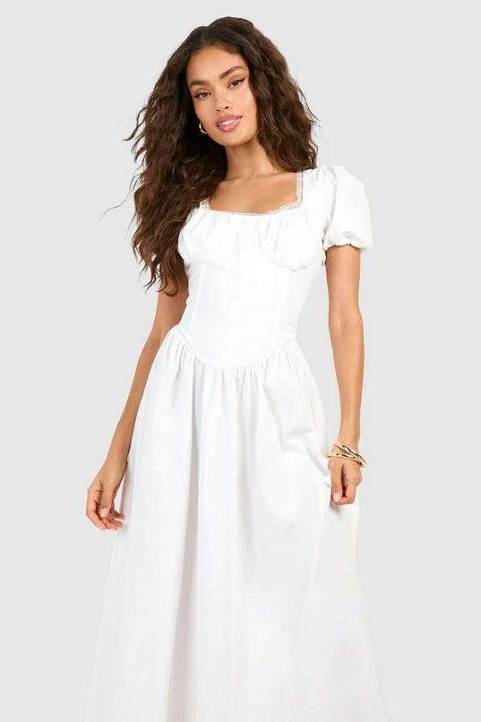 BOOHOO Puff Sleeve Milkmaid Midaxi Dress