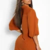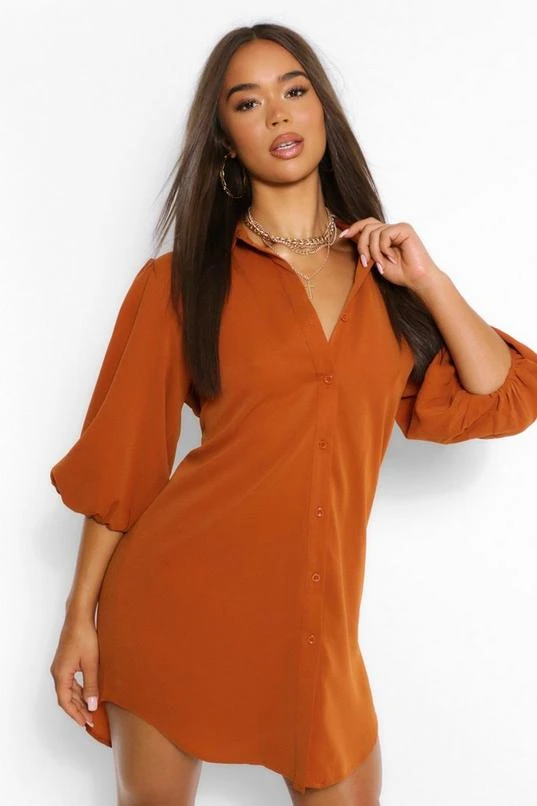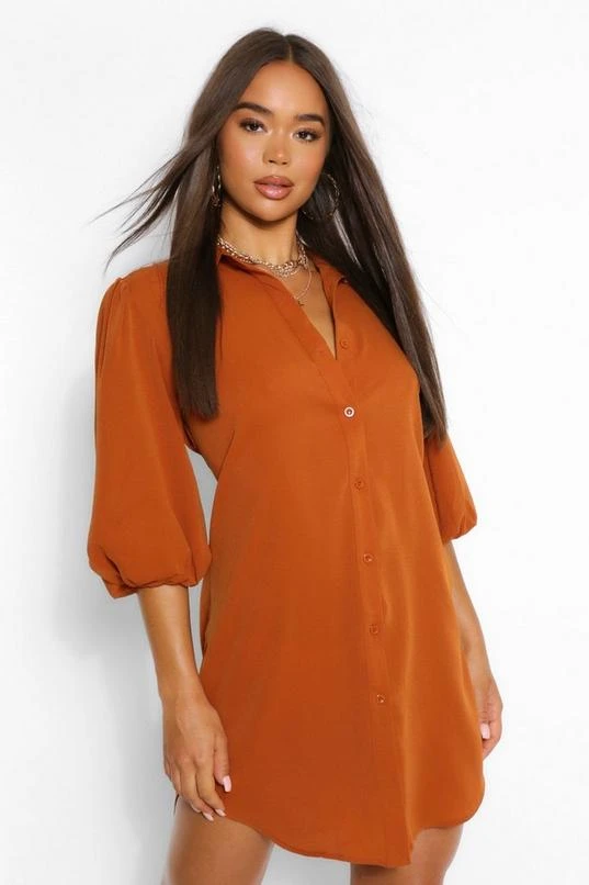 BOOHOO Puff Sleeve Oversized Shirt Dress