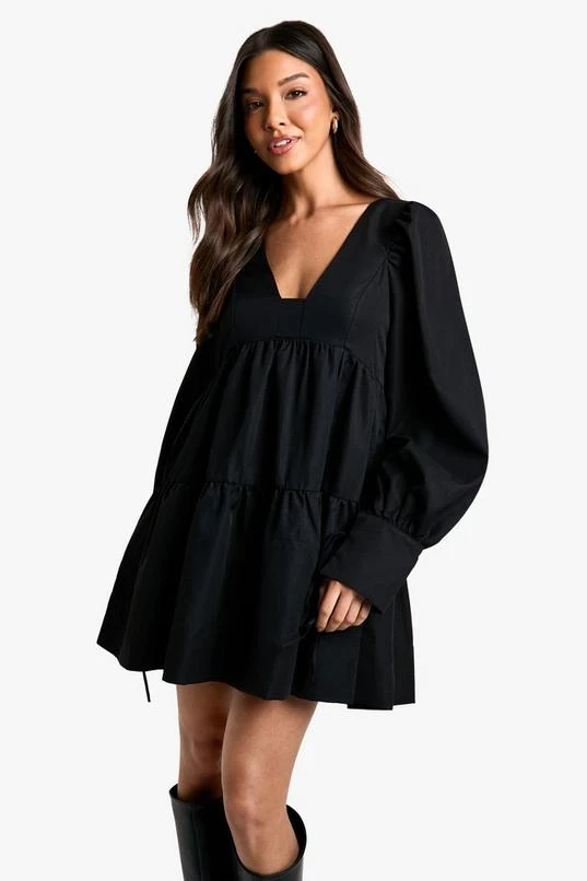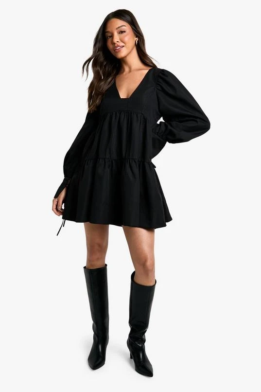 BOOHOO Puff Sleeve Tiered Smock Dress