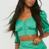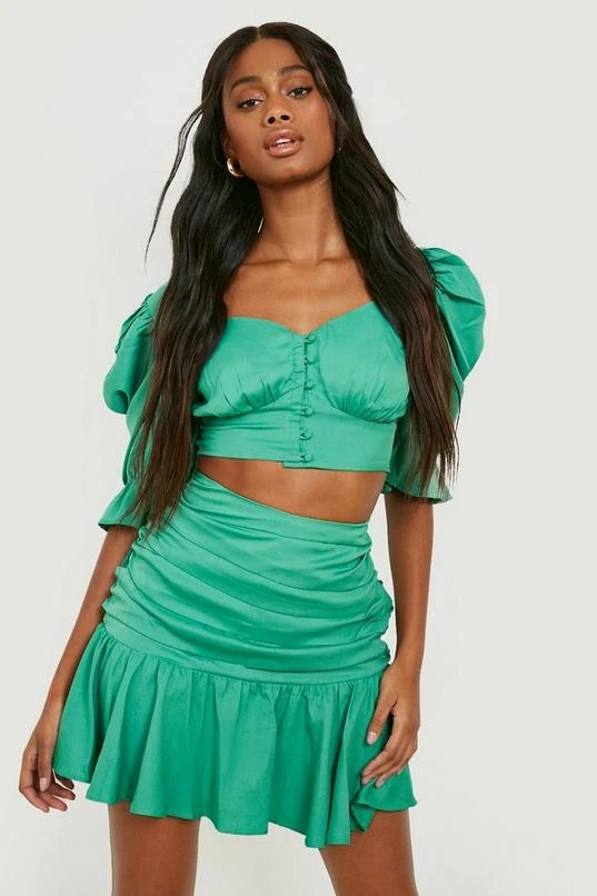 BOOHOO Puff Sleeve Top & Ruched Mini Skirt