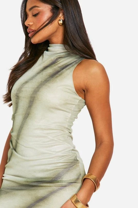 BOOHOO Racerneck Printed Mesh Mini Dress