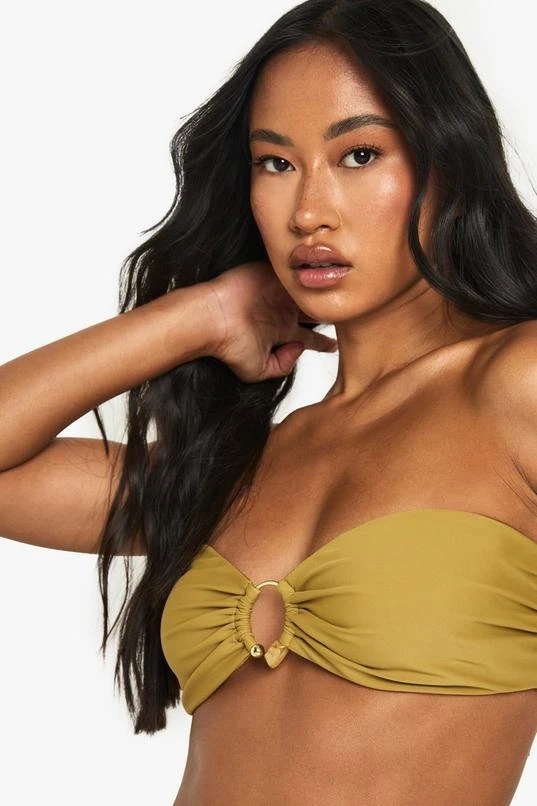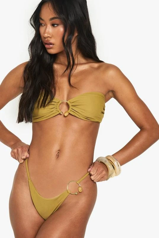 BOOHOO Resin Stone Trim Gold O-Ring Detail Bandeau Bikini Top