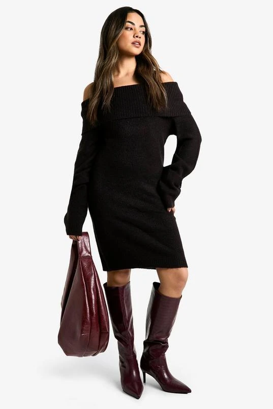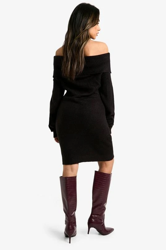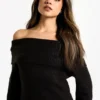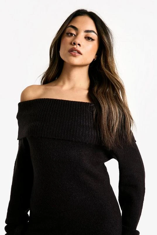 BOOHOO Rib Bardot Neckline Mini Jumper Dress