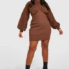 BOOHOO Rib High Neck Cut Out Sleeveless Maxi Dress