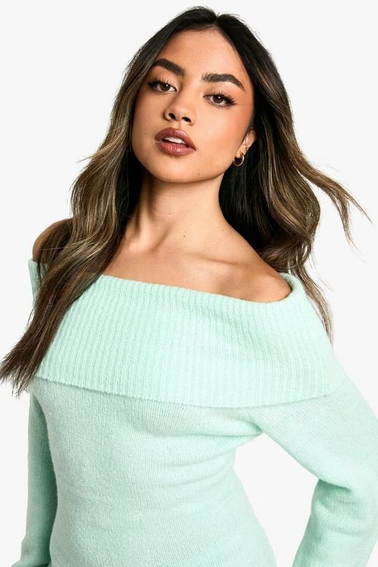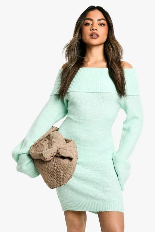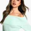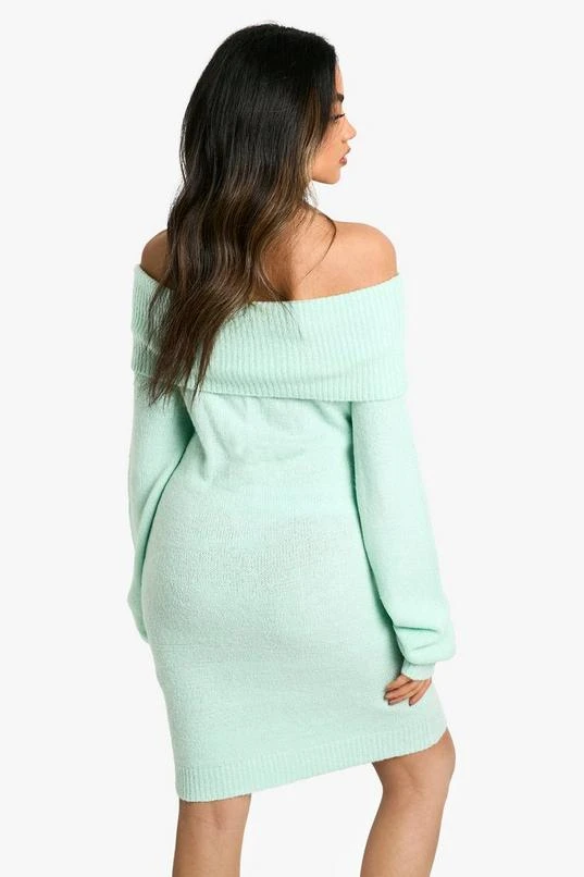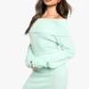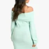 BOOHOO Rib Off The Shoulder Neckline Mini Sweater Dress
