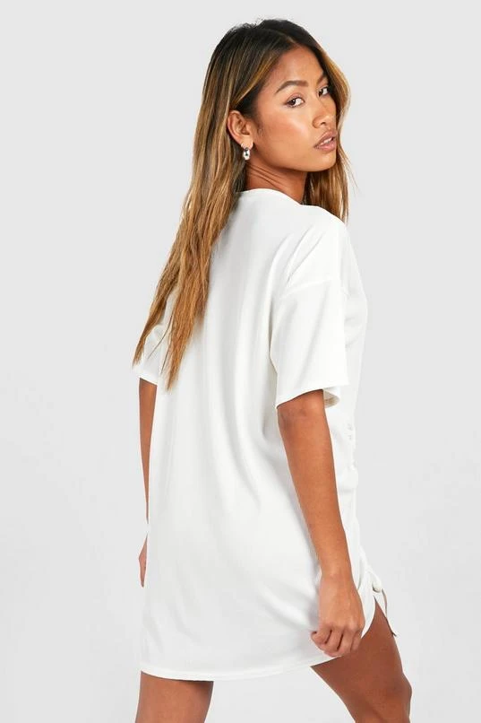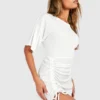 BOOHOO Rib Ruched Mini T-shirt Dress