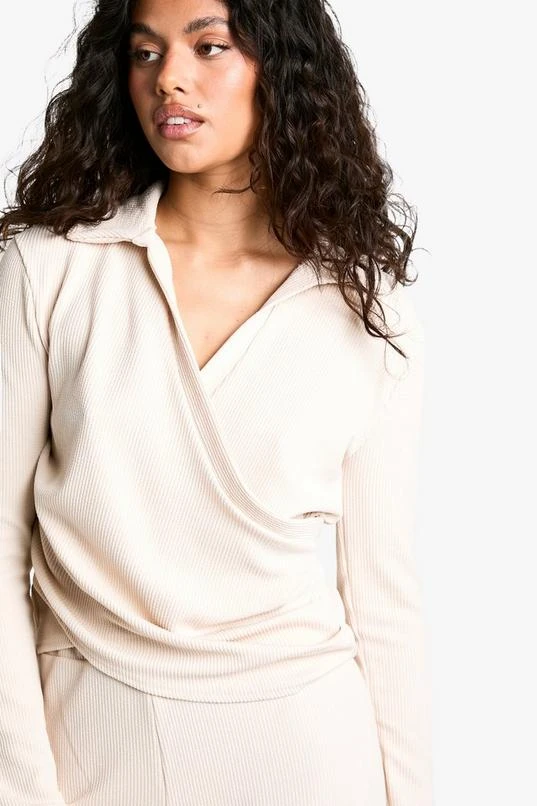 BOOHOO Rib Wrap Top And Flare Trouser Co-ord