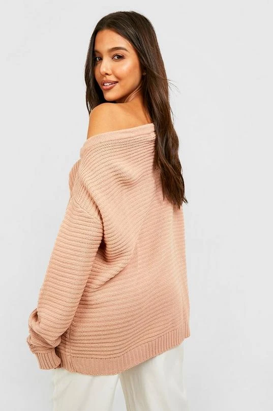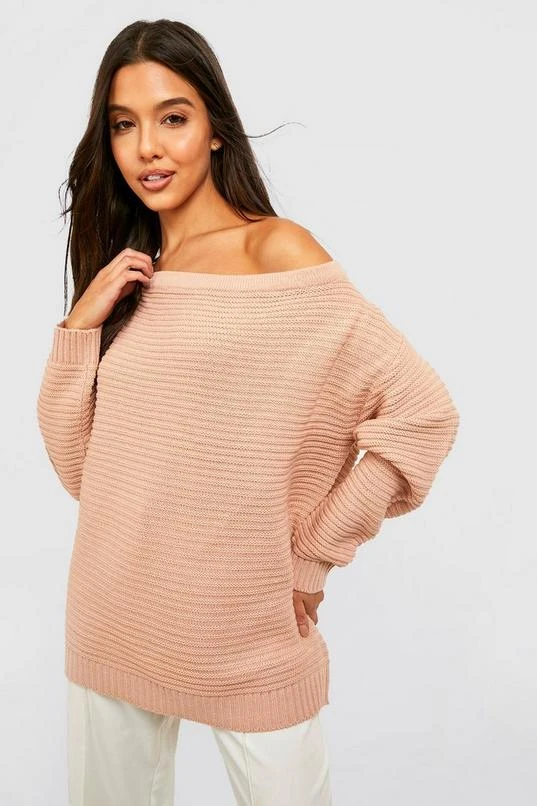 BOOHOO Ripple Stitch Boat Neck Sweater