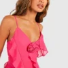 BOOHOO Rose Corsage Detail Ruffle Maxi Dress
