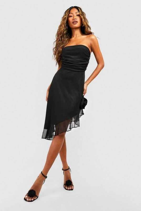BOOHOO Rose Detail Mesh Bandeau Mini Dress
